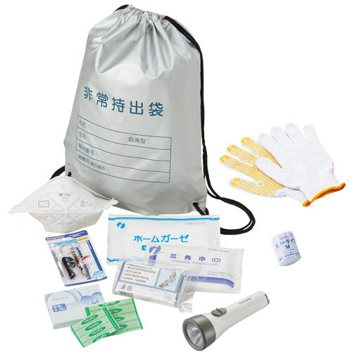 ●セット内容/非常持出袋、防塵マスク、懐中電灯(テスト電池付)、アルミブランケット、絆創膏18枚入、包帯、三角巾、ガーゼ、滑り止め付軍手、緊急呼子笛※通常ご納品までに、2~3週間かかります。また、需要期や非常時の場合、お届けまでに4週間以上かかる場合がありますことをご了承ください。