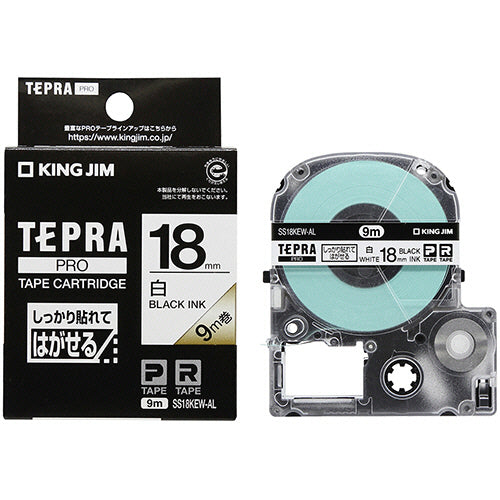 キングジム テプラ PRO テープカートリッジ しっかり貼れてはがせるラベル 18mm 白/黒文字 SS18KEW-AL 1個