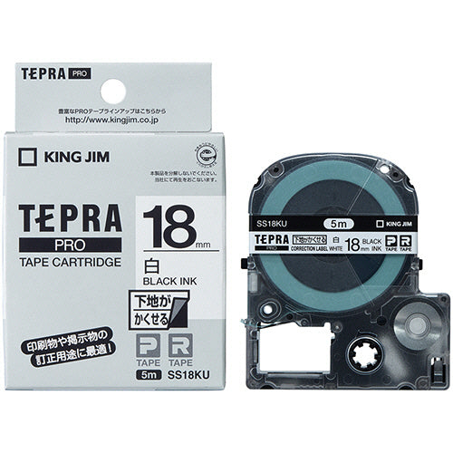 キングジム テプラ PRO テープカートリッジ 下地がかくせるラベル 18mm 白/黒文字 SS18KU 1個