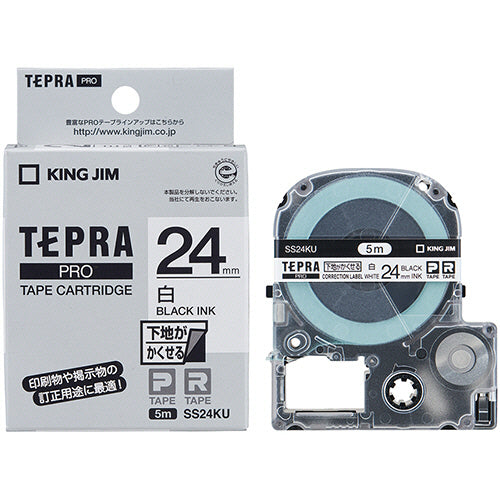 キングジム テプラ PRO テープカートリッジ 下地がかくせるラベル 24mm 白/黒文字 SS24KU 1個