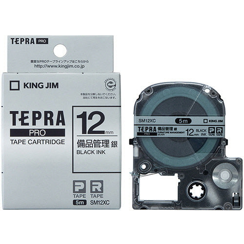 キングジム テプラ PRO テープカートリッジ 備品管理ラベル 12mm 銀/黒文字 SM12XC 1個