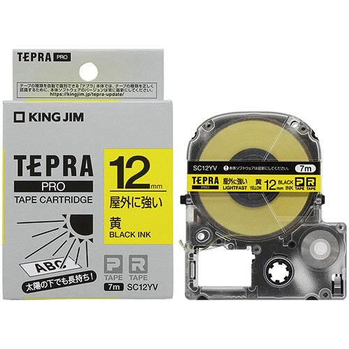 キングジム テプラ PRO テープカートリッジ 屋外に強いラベル 12mm 黄/黒文字 SC12YV 1個
