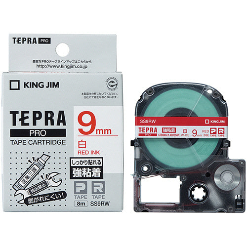 キングジム テプラ PRO テープカートリッジ 強粘着 9mm 白/赤文字 SS9RW 1個