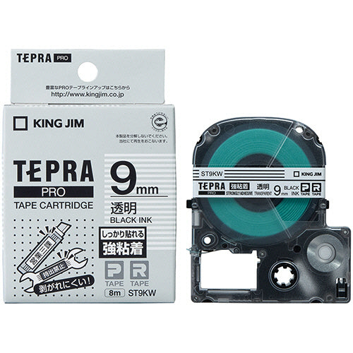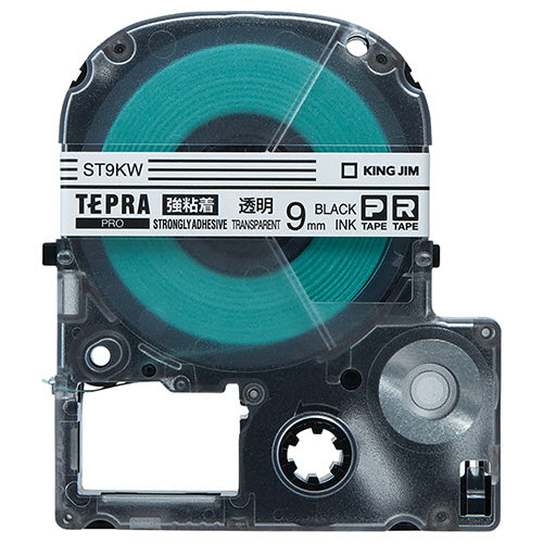 キングジム テプラ PRO テープカートリッジ 強粘着 9mm 透明/黒文字 ST9KW 1個