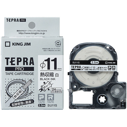 キングジム テプラ PRO テープカートリッジ 熱収縮チューブ 直径11mm 白/黒文字 SU11S 1個