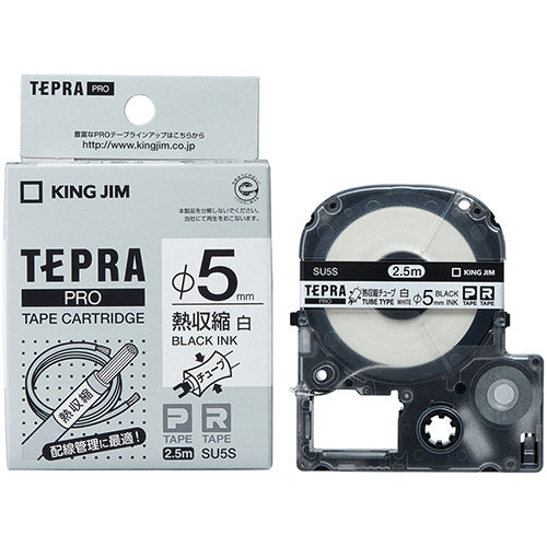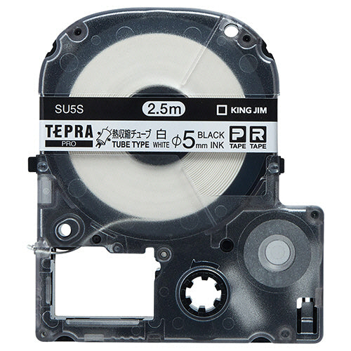 キングジム テプラ PRO テープカートリッジ 熱収縮チューブ 直径5mm 白/黒文字 SU5S 1個