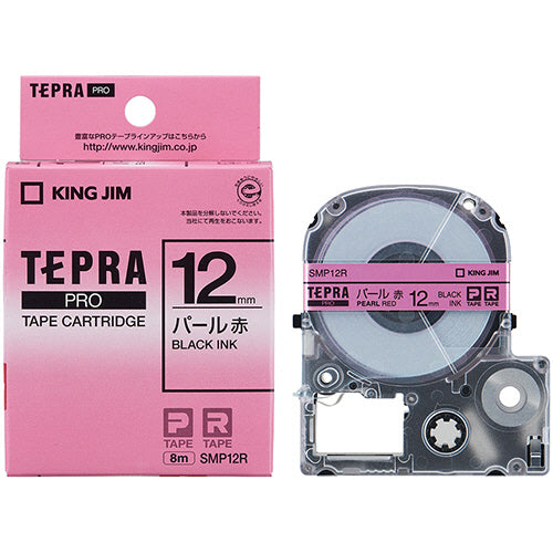 キングジム テプラ PRO テープカートリッジ カラーラベル(パール) 12mm 赤/黒文字 SMP12R 1個