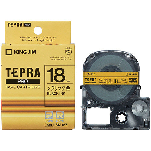 キングジム テプラ PRO テープカートリッジ カラーラベル(メタリック) 18mm 金/黒文字 SM18Z 1個