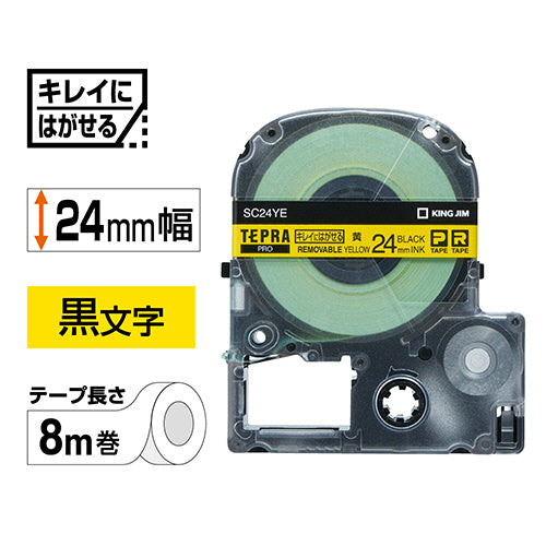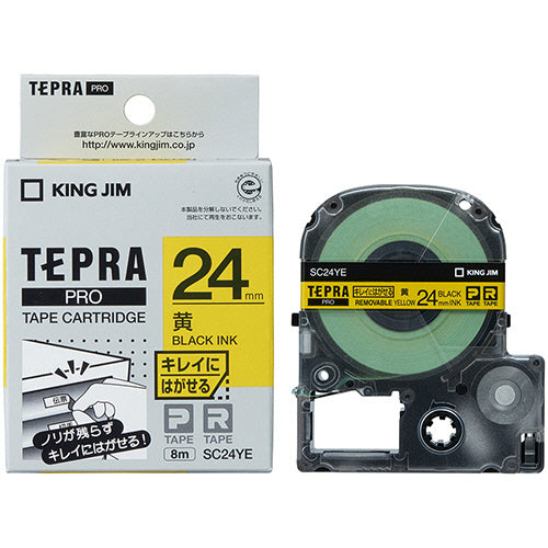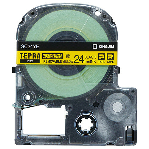 キングジム テプラ PRO テープカートリッジ キレイにはがせるラベル 24mm 黄/黒文字 SC24YE 1個