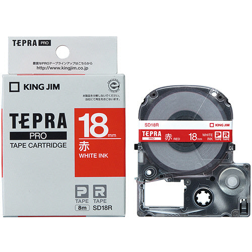 キングジム テプラ PRO テープカートリッジ ビビッド 18mm 赤/白文字 SD18R 1個