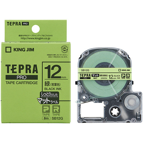 キングジム テプラ PRO テープカートリッジ マットラベル 12mm 緑(若葉色)/黒文字 SB12G 1個