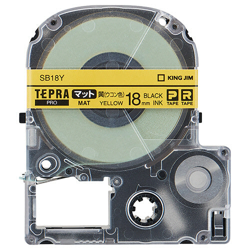 キングジム テプラ PRO テープカートリッジ マットラベル 18mm 黄(ウコン色)/黒文字 SB18Y 1個