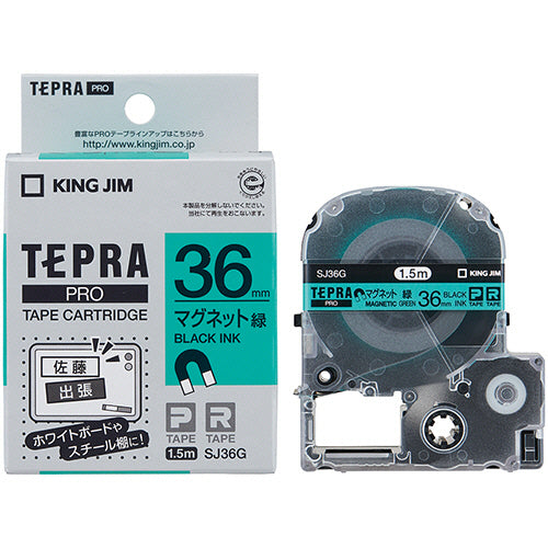 キングジム テプラ PRO テープカートリッジ マグネットテープ 36mm 緑/黒文字 SJ36G 1個