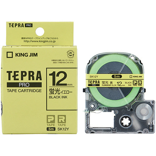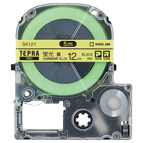 キングジム テプラ PRO テープカートリッジ 12mm 蛍光イエロー/黒文字 SK12Y 1個